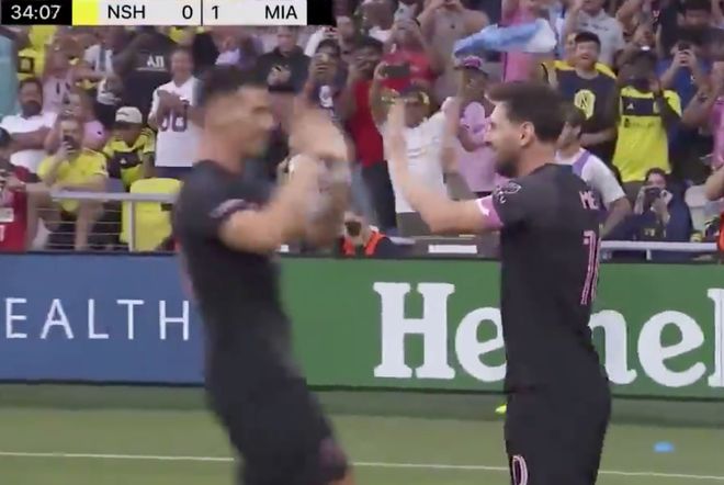 梅西球迷有福了!北京时间10月19日,美国职业足球大联盟常规赛期间,迈阿密国际队客场挑战纳什维尔队。梅西首发出场,贡献了神级表现。短短5秒的时间,他接连击败了三个人,并在世界范围内掀起一波波浪潮,令人惊叹。这场比赛是常规赛的收官之战。梅西向金靴发起进攻,助力王者和MVP。尽管是客场比赛,梅西在场内依然得到了大量球迷的支持。第35分钟,梅西的精彩表现让所有人大吃一惊——他退到前场,用胸部将球停了下来。两名敌方玩家在他旁边,但无法拦截。随后,梅西迅速转身,离开了两名后卫。就在这时,第三名防守球员从梅西左前方跑了过来,试图干扰梅西。梅西非常灵活,左脚带球直接晃过第三后卫呃干净。当防守队员做出反应并转身阻止时,已经太晚了。禁区外,梅西没有突破,而是直接尝试一脚远射,击中球门近角。梅西的射门几乎击中门柱并入网,守门员无法触及。进球后,梅西露出霸气表情,跑到两侧高高跃起,接受全场球迷的欢呼。 5秒内,梅西连续超越5人,让人们看到了巅峰时期的强大他。这粒进球是梅西本赛季在美国职业足球大联盟的第27粒进球,位列射手榜第一,领先第二名2球。同时,这也是他职业生涯的第887个进球。